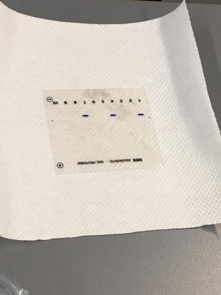 – Se aplică banda de hârtie de filtru în zona în care se vor depune serurile și se îndepărtează imediat ce s-a umezit.
